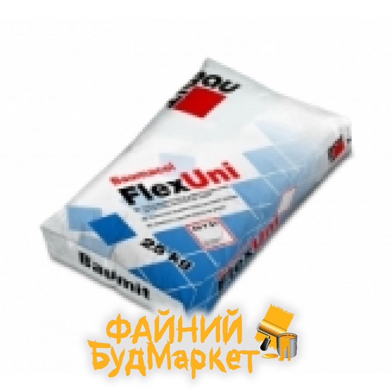 Смесь для клейки плитки Баумакол Флекс Уни - гибкая, тиксотропная, улучшеная, цементо-песочная клеевая смесь гидравлического твердения для тонкослойного приклеивания плиточных материалов различного вида. Водо- и морозостойкая.