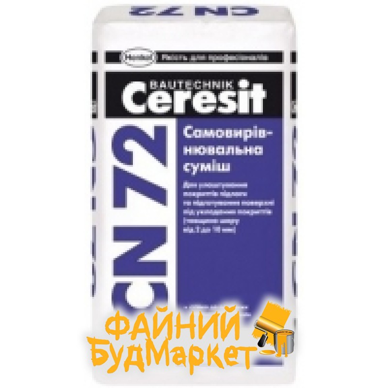 Смесь Ceresit CN 72 предназначенная для выравнивания бетонных и цементно-песчаных основ для последующего заключения линолеума, ковролина, ламината, керамической плитки, плитки, из ПВХ, паркета и др. покрытий в промышленных, жилищных, общественных, административных и бытовых помещениях.